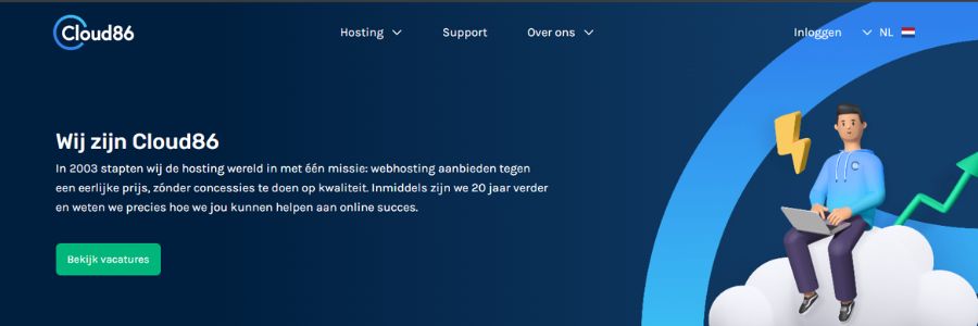 Cloud86 over ons: Duidelijke richting, direct naar vacature, duidelijk richting naar snelheid. (Cloud86 reviews)