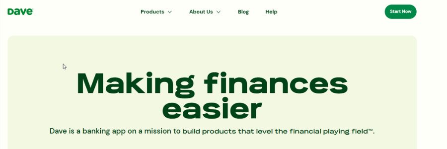 Dave.com about: Zeer sterke en duidelijke communicatie, focus op één punt, dikke titel en goede persoonlijke touch eronder.