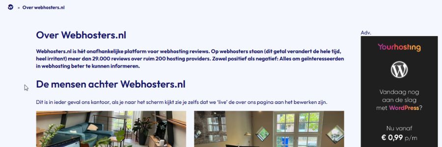 Over ons pagina Webhosters.nl: Briljant! 😊