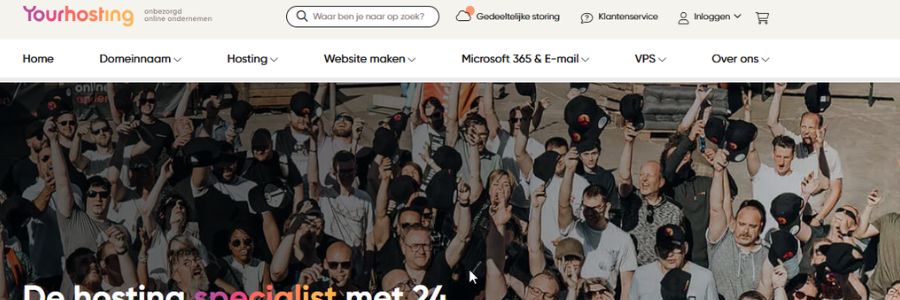 Yourhosting over ons: Geeft direct weer dat het om een groot bedrijf gaat, ook een grote focus op ‘werken bij’.