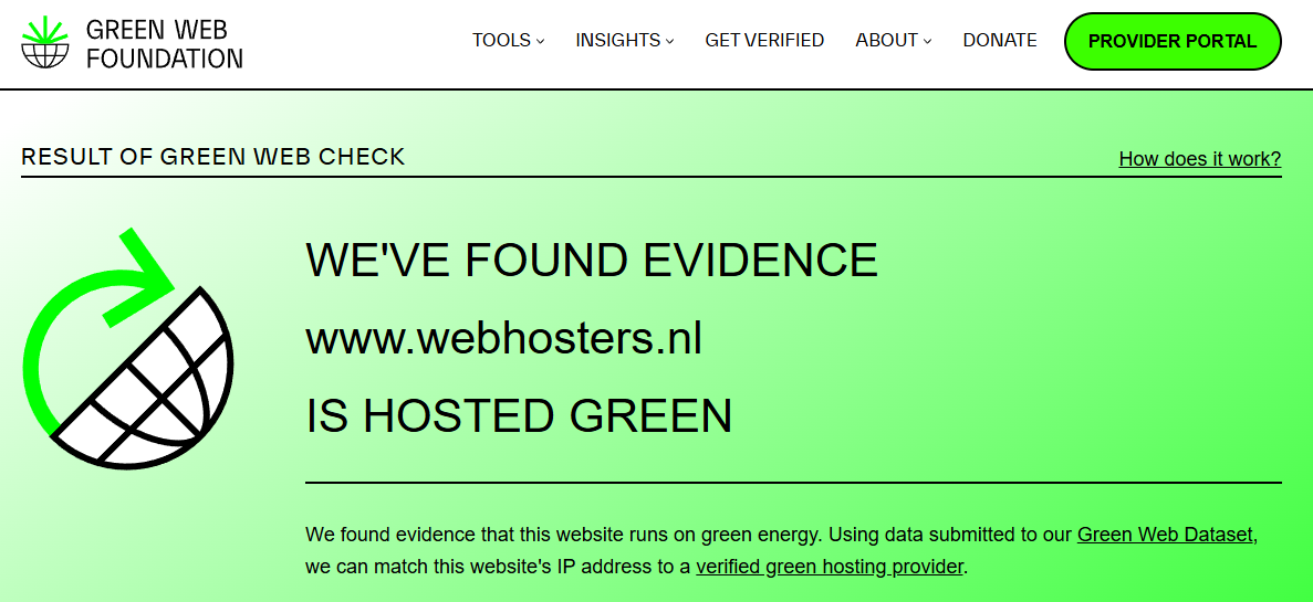 Duurzame ambities en op zoek naar groene hosting? Ook dat is mogelijk! Van de goed gewaardeerde hostingbedrijven op onze site weten we dat onder meer mijn.host en cloud86 specifiek groene hosting aanbieden. Via de Green Web Foundation kun je controleren of je website al groen gehost wordt. Aangezien een hostingbedrijf meestal hun eigen bedrijfswebsite zelf host, kun je de bedrijfswebsite van je beoogde webhoster invoeren in de tool van Green Web Foundation om te zien of ze groene hosting aanbieden.