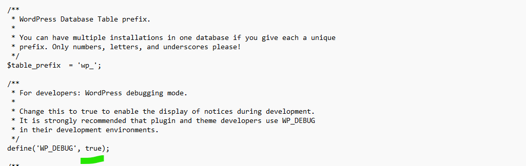 Om een fout in je code of website te kunnen repareren kan het helpen om WP_Debug te activeren, dat kan je doen door je wp-config file te openen. En dit stukje code:
