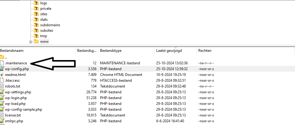 Wat ook nog wel eens voorkomt, is dat je website in maintenance mode blijft hangen nadat je een update hebt doorgevoerd, waarschijnlijk het gevolg van ongeduldig doorklikken tijdens plugin of thema updates. In dit geval kun je inloggen op je hosting pakket – naar je file manager en de (afhankelijk van de software die je gebruikt) de file met bijvoorbeeld .maintenance verwijderen.